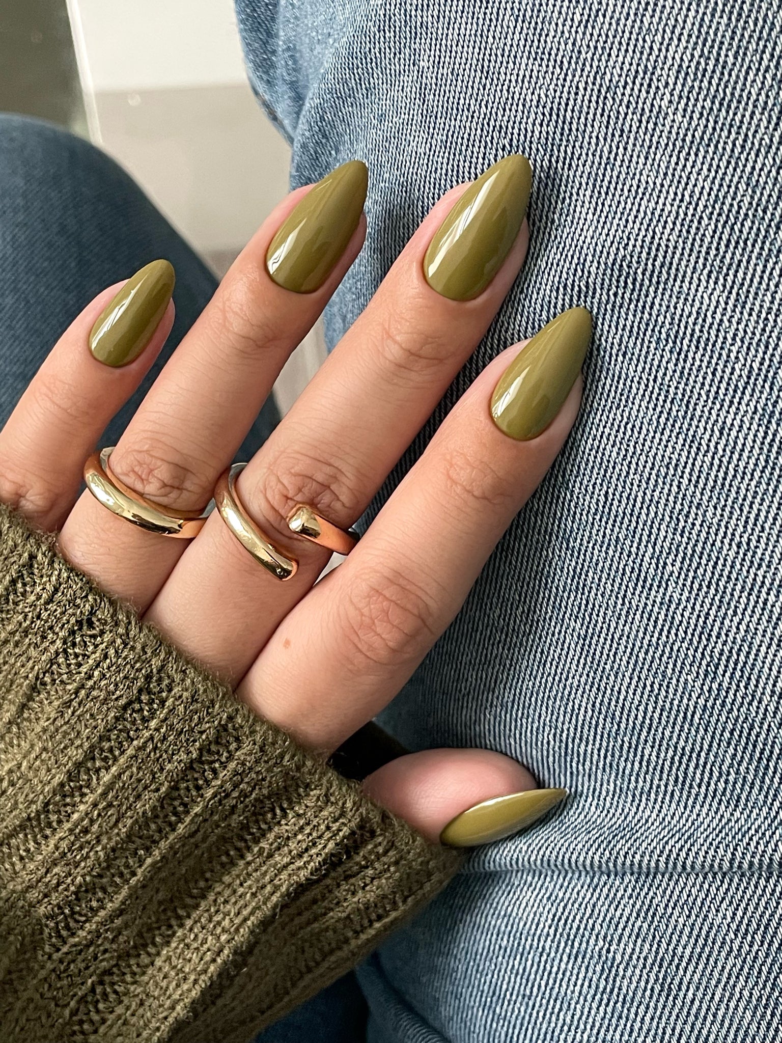 "Olive Grove" gel polish offers the ideal olive-green shade. This high-quality, highly pigmented polish is an essential selection for achieving a beautiful olive-green manicure this autumn.
